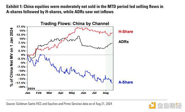 不过结构上,从高盛客户这边来看,2月份以后基本是一直减持A股,最近幅增持的主要是H股和中概股: