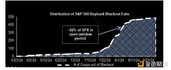 回购,目前是美国股市最强劲的技术支撑,企业在过去几周的回购活动达到正常水平的两倍,每天大约有 50 亿美元(年 1 万亿美元),这股买盘力量可能会持续到9月中旬后逐渐消退。