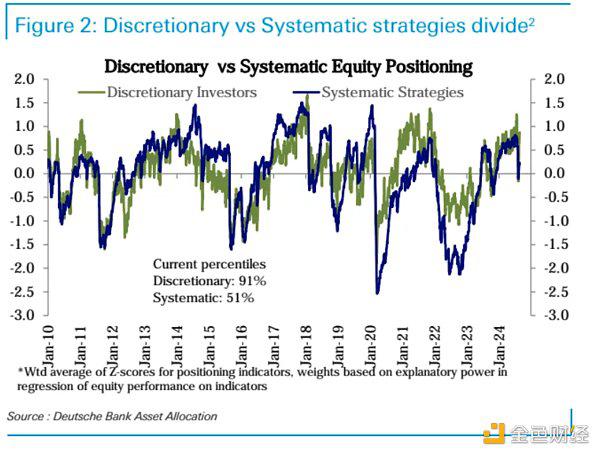 股票仓位来看,夏季早些时候,主观策略资金做得相当好,及时减仓,并在 8 月份有了进攻的机会,下图可以看到绿线主观策略资金最近补仓的速度非常快,仓位已经又回到了历史91百分位,但系统性策略资金反应慢了一些目前只有51百分位: