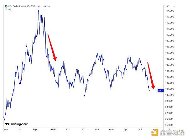 过去一个月,美元指数(DXY)已下跌3.5%,为2022年底以来最快的下跌速度,这与市场对美联储降息预期增强有关。