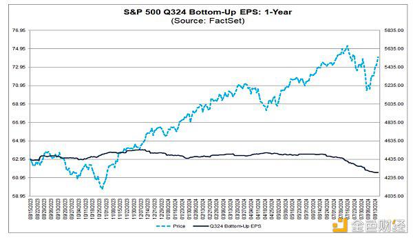 对于美股来说,当前市场仍处于牛市,主要趋势依然向上。然而到年底的几个月交易环境将会较为缺乏业绩主题,市场的上行和下行空间都会受到限制。市场不断下修Q3的盈利预期: