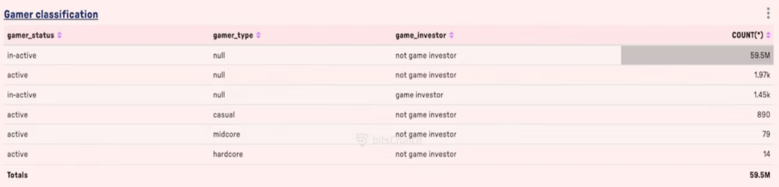 当前数据显示,绝大多数游戏地址处于不活跃状态。只有 1,970 个地址被归类为活跃地址,而 1,450 个则被归类为不活跃的投资者地址。值得注意的是,只有 14 个地址在所有 Web3 游戏中被认定为铁杆玩家。这种分布描绘出一个只有少量核心高参与度用户的市场。