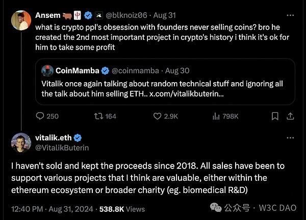 自 2018 年以来,我从未出售过 ETH 获利——Vitalik,8 月 31 日,Buterin澄清说,他从未出售其持有的以太币以获取利润,并指出自 2018 年以来,他所有的 ETH 转账都是为了支持他认为有价值的各种项目,无论是在“以太坊生态系统或更广泛的慈善机构”内。